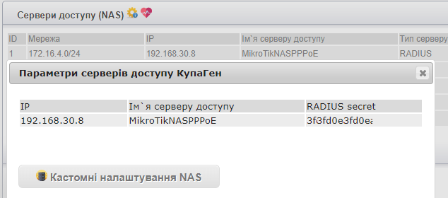 1. Додаємо для мережі користувачів яка буде використана для PPPoE відповідний NAS